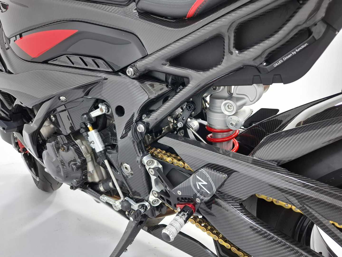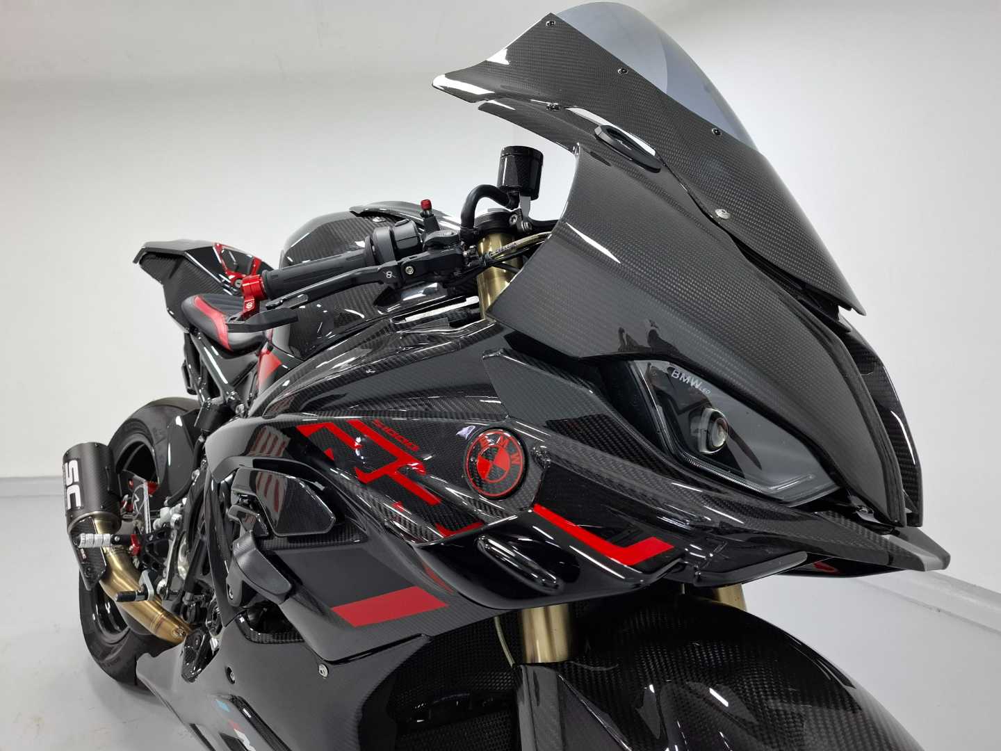 Arrow racing steel collectors S1000RR ,CR-T Silencer, Carbon with mesh on exit, Bike stand support {2 pcs.} , S1000RR '20+ Radiator and oil cooler guard, TST IN-Tail LED Intergrated tail light RR 23, 300 Plus specified paint work, Carbon screen with light smoke, Lightech frame crash protection S1000RR 2023+, Front fender T/G, Rear Hugger T/G, Brace carbon mirror set, SF HP BMW S1000RR 2019+, Carbon screen with light smoke, Clear clutch cover BMW- Cable control, BMW S1000RR '20-'22 fairing cover- set, Bonamici lever set, BMW S1000RR '20-'22 frame cover- set, Seat/ tail – center, FS Carbon sprocket cover, Carbon swing – arm set, FS carbon tank fairing set, Aero wheel cover – set, Fluid reservoir front brake 25ml – carbon gloss, Fairing side panel set, Carbon S1000RR headlight fairing, Undertail cover, "R" Version ADJ. Rear sets, Gilles tooling passenger footpeg cover kit BMW, Paint protection film, Carbon TWM tank cap base, Universal TWM tank fuel insert for TWM caps, The one to get DTLD package, Lightech S1000RR chain adjuster, Chain 525 120 ZVMX2 gold rivet, Carbon side stand